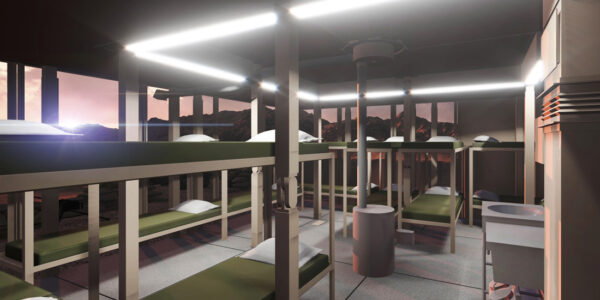 We will provide design, development, and fabrication services in support of the SLiM concept, which includes shelter and basic living amenities for small contingency bases. The concept design drawings are for a scale model of SLiM. Under the 12-month Phase II option of the contract, Benham will fabricate and assemble the units and provide a functional prototype of SLiM, including two cubes to demonstrate integrated energy and water management subsystems. Additional SLiM features include:
