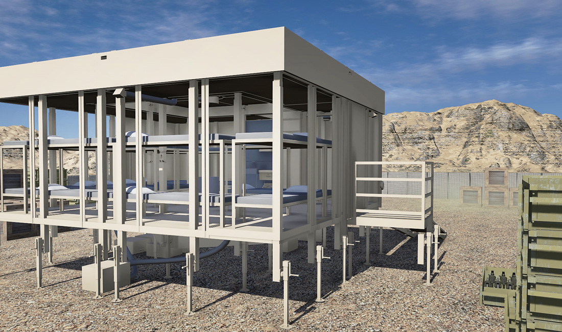 Tactical combat teams are often on the move in extreme environments. Benham created its self-sustaining living module (SLiM) concept, which is a rigid-walled, modular shelter system that includes solar energy collection and microgrid power management for military personnel at base camps. SLiM can: